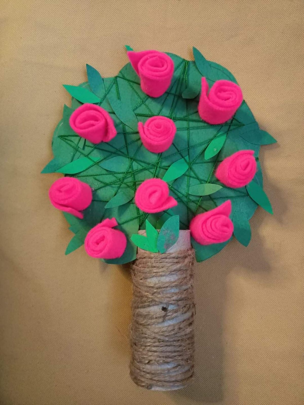 W czasie ferii dzieci podczas zajęć wirtualnej akademii malucha dzieci przygotowały różane drzewka w prezencie dla babci i dziadka.