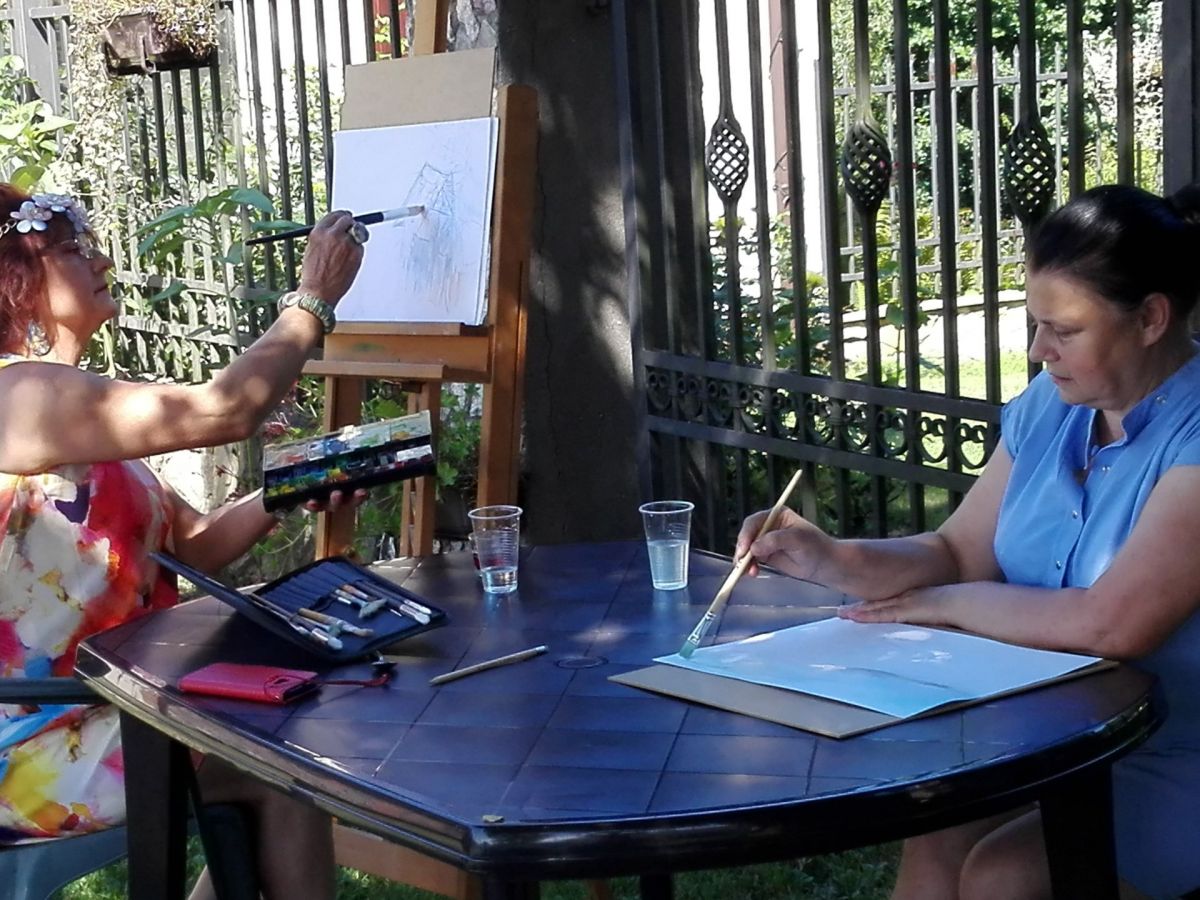 Grupa KOLOR z Mszczonowskiego Ośrodka Kultury pod opieką instruktor Anny Lipińskiej – Broda przebywała na plenerze malarskim od 14 do 16 sierpnia 2020 roku w Gospodarstwie Agroturystycznym ,, POLITOWIZNA,, w Paplinie (gm. Kowiesy). Plener ten odbył się pod hasłem „Śladami Jana Adama Maklakiewicza ”.Wszystko udało się na sto procent ! Cudowna pogoda, piękna okolica w dolinie rzeki Chojnatki,świetne warunki i przemili gospodarze.Był czas na pracę twórczą i spotkanie integracyjne w miłej atmosferze. Można zażartować , że obrazy były malowane ogniem ( w piątkowy wieczór przy ognisku ) a w sobotę i niedzielę promieniami słońca.