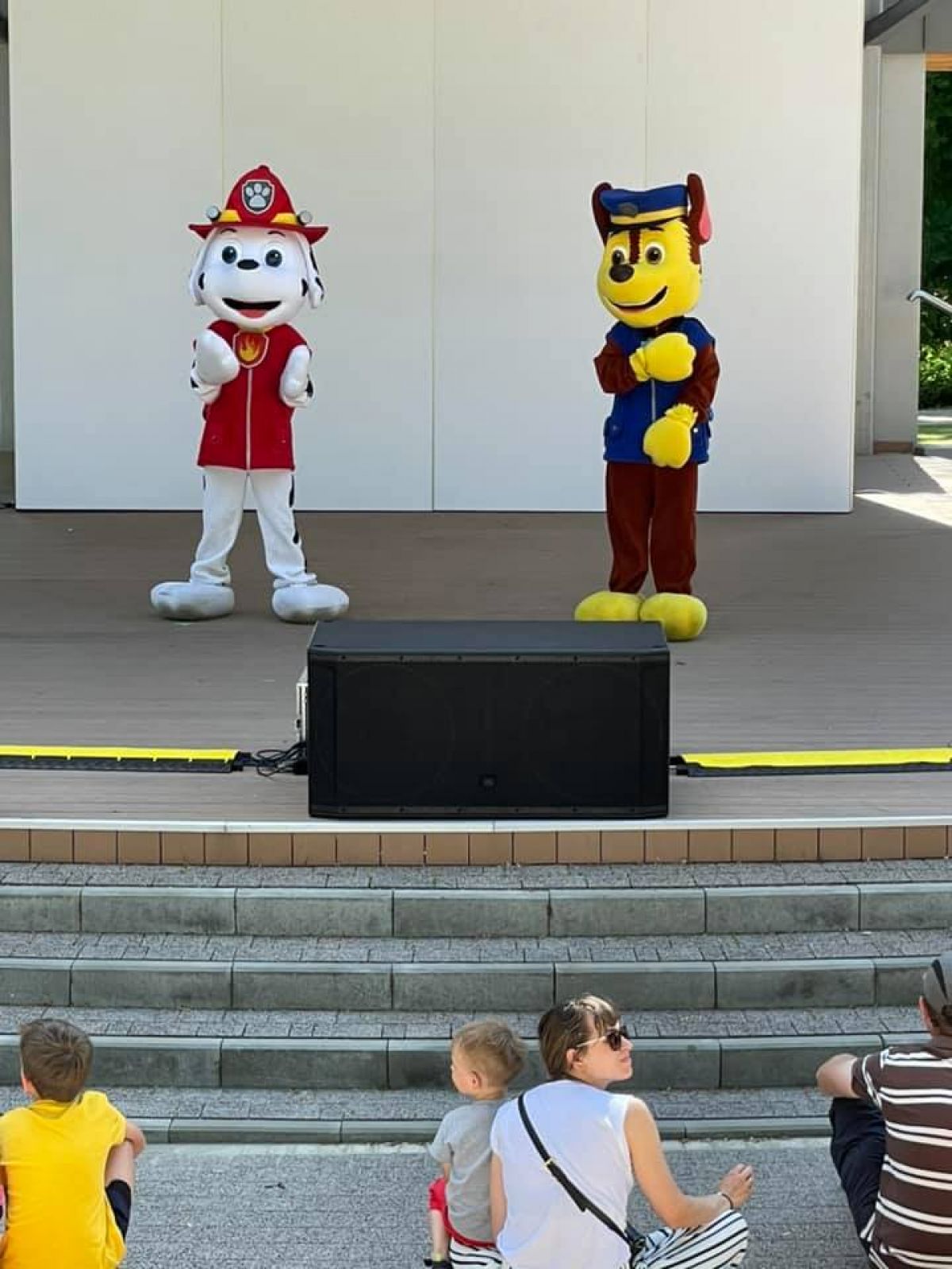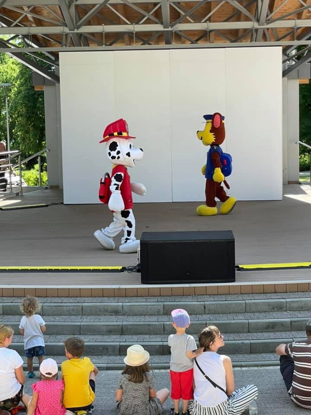 W ramach Niedzielnych Spotkań Teatralnych dla Najmłodszych w mszczonowskim amfiteatrze wystawiony zostal spektakl - Chase i Marshalla z Psiego Patrolu - w wykonaniu artystów Teatru Forma. Dodatkowymi atrakcjami dla dzieci był pokaz mega baniek oraz animacje taneczno - ruchowe. Zapraszały do udziału w kolejnych cyklicznych spotkania dla najmłodszych.