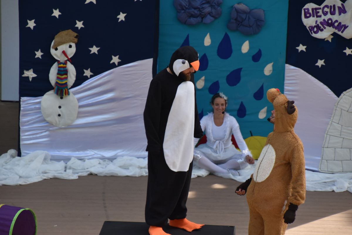 To było wspaniałe niedzielne (3.07) popołudnie. Dziękujemy, że byliście z nami! Specjalnie dla najmłodszych wystąpili aktorzy Teatru w Ruchu w przedstawieniu „Zimowa Kraina Czarów”. Było wesoło, dzieci w wakacyjnych nastrojach włączały się do zabawy. W przedstawieniu mieszkańcy lodowej krainy: Pingwin Tup Tup, Łoś Anatol i Śnieżynka Marcelinka trafiają na folder zapraszający do Ciepłych Krajów, gdzie znajduje się... Magiczny Pył!