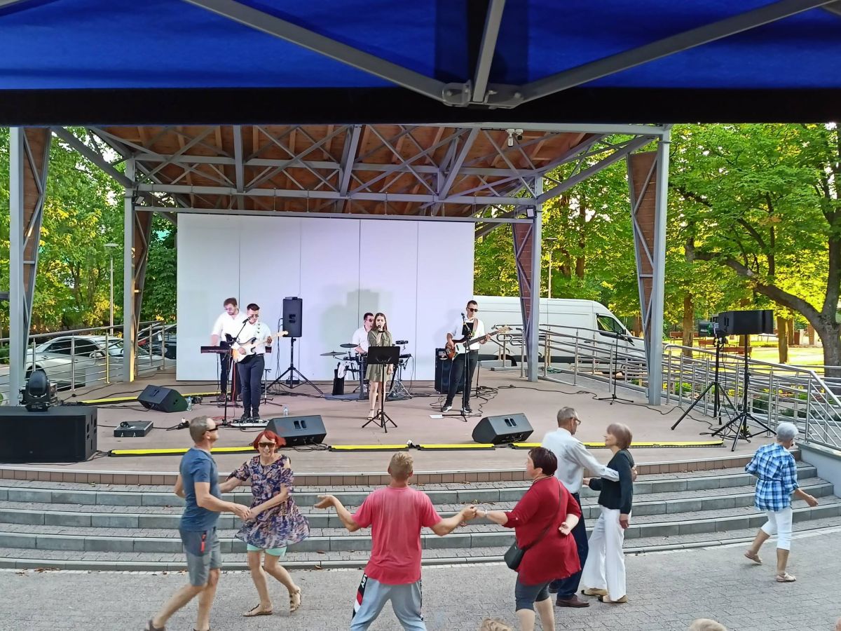 To był kolejny weekend pełen wrażeń. Rozpoczęliśmy go od piątkowej zumby z Moniką Wicińską, by podszlifować formę przed sobotą. W sobotę tradycyjnie już Mszczonowski Ośrodek Kultury zaprosił na wieczorną potańcówkę. Tym razem pogoda spłatała nam figla i zdecydowaliśmy się na przeniesienie imprezy z amfiteatru do budynku MOK-u. Ależ było cudownie. Z tygodnia na tydzień przybywa miłośników tańca. Wraz z pierwszymi dźwiękami kapeli, na parkiecie pojawiło się wiele par. W niedzielę trzymaliśmy kciuki za pogodę, tym razem udało się. I wieczorny koncert miał miejsce w przepięknym amfiteatrze.