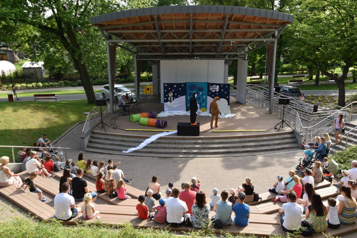 To było wspaniałe niedzielne (3.07) popołudnie. Dziękujemy, że byliście z nami! Specjalnie dla najmłodszych wystąpili aktorzy Teatru w Ruchu w przedstawieniu „Zimowa Kraina Czarów”. Było wesoło, dzieci w wakacyjnych nastrojach włączały się do zabawy. W przedstawieniu mieszkańcy lodowej krainy: Pingwin Tup Tup, Łoś Anatol i Śnieżynka Marcelinka trafiają na folder zapraszający do Ciepłych Krajów, gdzie znajduje się... Magiczny Pył! Pył ten według legendy spełnia wszystkie marzenia. Bohaterowie decydują się na długą i niebezpieczną wyprawę, aby ziściły się ich pragnienia. Po drodze jednak okazuje się, że nie zawsze to, czego chcemy jest dokładnie tym, czego potrzebujemy. Napotkana w Ciepłych Krajach Pszczoła Wesoła uświadamia ich, że musimy zadbać o przyrodę, bo to ona nas wszystkich łączy. Łoś zakochuje się w Pszczole, a Pingwin zostaje sam. Ale może nie całkiem...? To było ciekawe widowisko. Już teraz zapraszamy na kolejne przedstawienie 17 lipca o godzinie 17. zaproponujemy „Przygody Zefirka i Spółki” . Tego samego dnia o godzinie 19. dla starszej publiczności wystąpi kabaret: Mikołaj Cieślak i Rafał Zbieć znani z Kabaretu Moralnego Niepokoju.