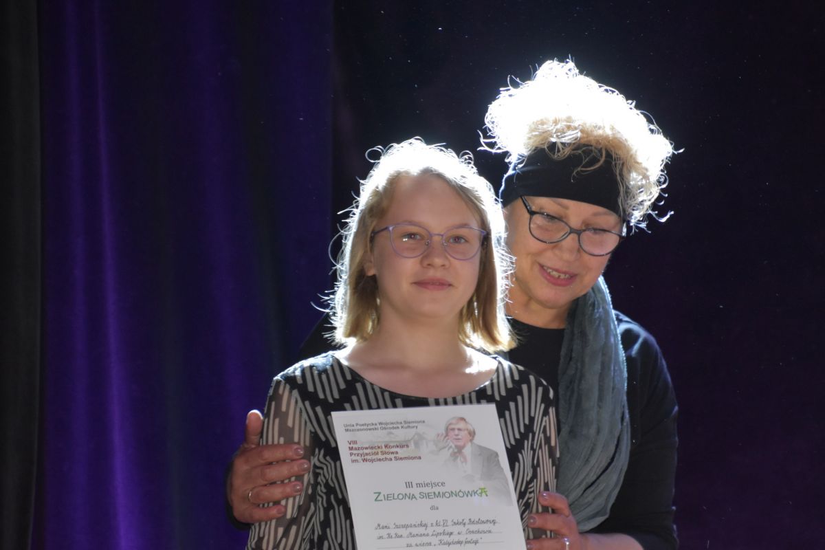 W piątek (3.06) w Mszczonowskim Ośrodku Kultury odbył się VIII Mazowiecki Konkurs Przyjaciół Słowa im. Wojciecha Siemiona. Tegoroczna edycja jest szczególna, bo stacjonarnie wraca po trzech latach pandemii oraz odbywa się w dziesiątą rocznicę powstania Unii Poetyckiej Wojciecha Siemiona. „Konkurs potwierdził tezę, że młodzi ludzie w sposób delikatny i wyczulony reagują na to, co dzieje się wokół nas. To wiersze przemyślane i refleksyjne. Młodzi poeci potrafią obserwować co dzieje się wokoło i reagować”, mówił przewodniczący jury Andrzej Dębkowski. Prace, nadesłane wiersze oceniali też: Dorota Jaworska, Anna Czarnecka, nad całością czuwały: Barbara Kasper-Siemion i Grażyna Pływaczewska.