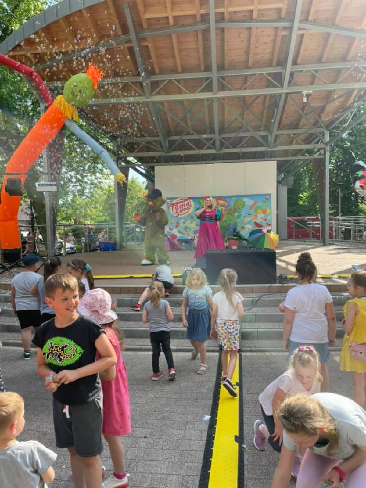 Dzień Dziecka z Mszczonowskim Ośrodkiem Kultury. Dla najmłodszych w miejskim amfiteatrze wystąpili artyści z Lady Fama Show, czyli Klara i Dyzio. Zabawa odbywała się pod hasłem: "Bezpiecznie, zdrowo, kolorowo".